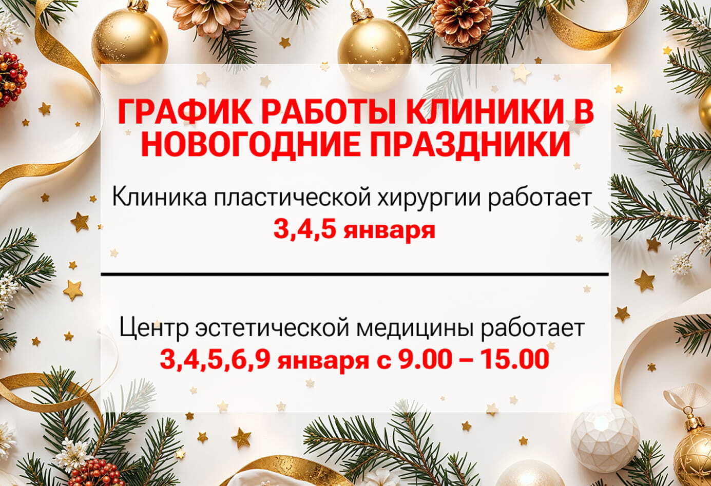 - Клиника пластической хирургии – 3,4,5 января